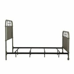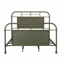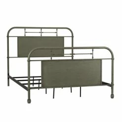 Add a unique look to your home with the Vintage Series Queen Metal Bed. Crafted of metal tube and finished in a beautiful antique green with wear thru. The headboard and footboard feature a softly shaped cap rail and turned metal spindles highlighting a center panel. The metal side rails and bed slats are finished in the antique green with wear thru. The Vintage Series headboard will work with a metal bed frame making it perfect in small spaces and any decor from cottage to farmhouse.