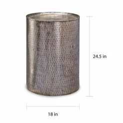 Bring some unforgettable interest and expressive style into your home with this distinctive end table. Distressed pewter hammered with alluring texture makes for an artful way to lend a pop of personality to any space.