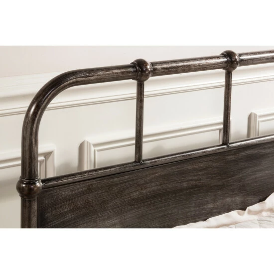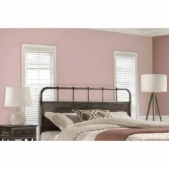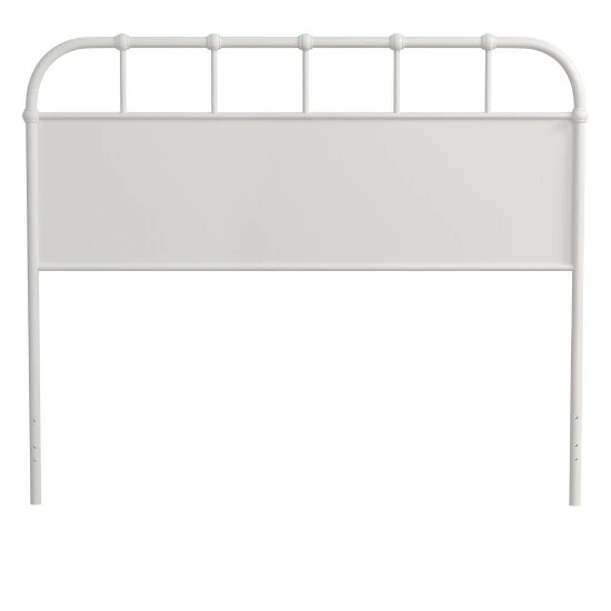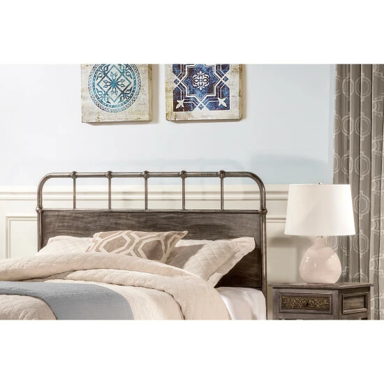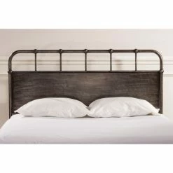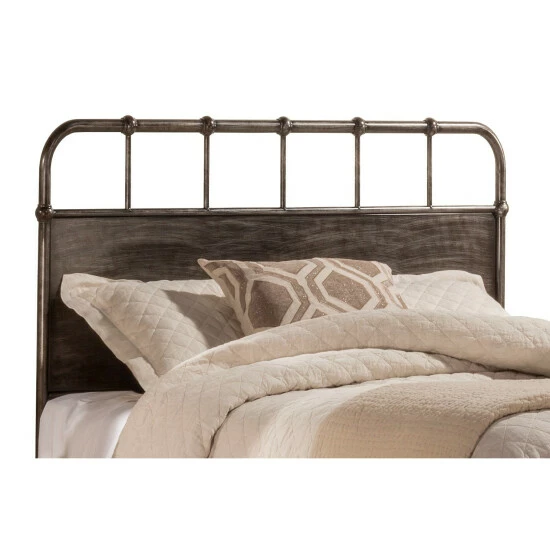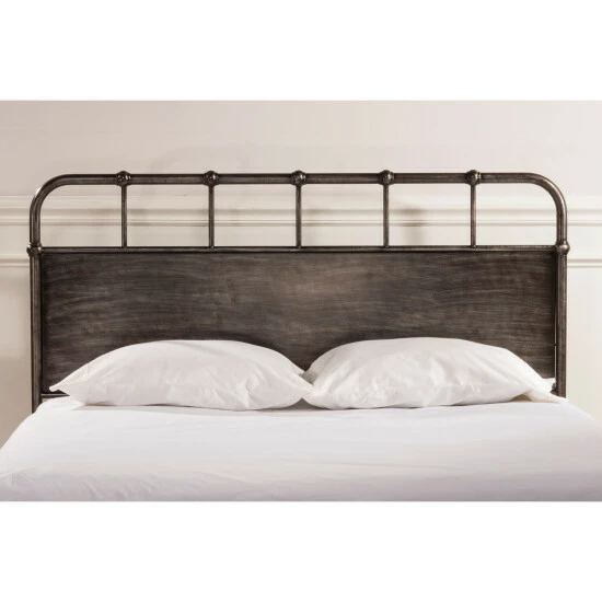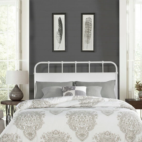 Provide a modern industrial spin on classic Victorian brass beds to your bedroom with the distinctive look of this headboard. The headboard is made of steel for wonderful durability and available in your choice of charming vintage finishes for a touch of utilitarian chic. It is made for a full/queen or king sized bed frame and detailed with a barred top rail and round castings for character.