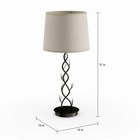 Inspired by the outdoors and a love of nature, this outdoor table lamp takes the familiar shape and theme of a winding and intertwining tree Β branch and transforms it into a fashionably cool outdoor lighting staple for your outdoor patio or seating area. The stately 31-inch tall table Β lamp features a simple support rod in a bronze finish that turns into branches that wind and curl upwards towards a 14 in. diameter stunning cream shade. This lamp would provide enough illumination for living room reading light, as well as provide rustic textured light to a sitting area in your lanai. Place on a screened-in porch with nature-themed patterned furniture. Whether your space is done in a farmhouse-chic style or a bohemian-infused design with rich colors spread around, this outdoor table lamp will bring style and function into your space.Β