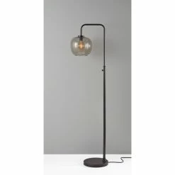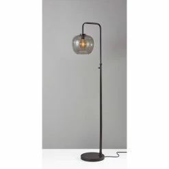 Bring Industrial style to your space with this Wiig floor lamp from Carbon Loft. The lamp features a round base and a crooked arm in a matte black finish. An irregular globe made from smoked glass beautifully filters the light from the vintage light bulb for a hint of timeless style.