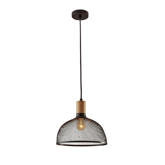 Add a dramatic industrial element to your dining or living space with this sizable pendant. A contemporary black metal mesh shade is paired with a natural rubber wood accent resulting in a modern industrial style with hints of Scandinavian influence. Use a vintage Edison bulb for soft, mood lighting, or an LED bulb for efficient overhead light.