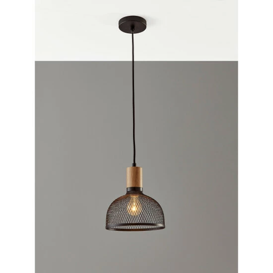 Infuse some theatrical charm into your dining or living space with this pendant. A contemporary black metal mesh shade is paired with a natural rubberwood accent resulting in a modern industrial style with hints of Scandinavian influence. This style looks great with all bulb types. Use a vintage Edison bulb for soft, mood lighting or an LED bulb for efficient overhead light.