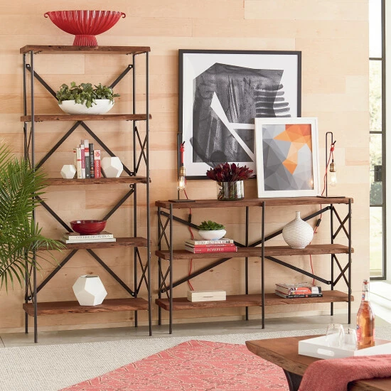 Bring some harmony and beauty to your office with this raw, rugged bookshelf. The shelf is made of natural materials and boasts a live edge for striking texture and depth that is sure to elevate decor as it durably bears up your favorite volumes and treasured decorations.