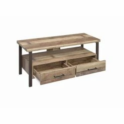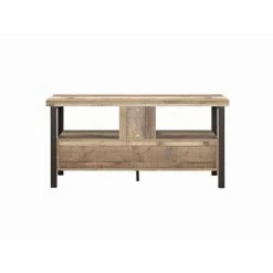 This handsome wood TV console looks great in an entertainment room or home bar. Right at four feet wide, it’s perfectly sized for up to 50-inch TVs. The console also includes a roomy shelf under the TV top to display small decorative vases or candles. Below that are two roomy drawers to store an extra blanket or two. Console has black finished legs and a wood grain finish that’s charismatic and timeless.