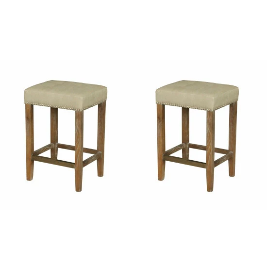 Warm and charming French country style gets a showcase with this set of stools. The natural oak legs are topped with beige linen for a breezy, effortless look that fits in with a wide variety of decor schemes.