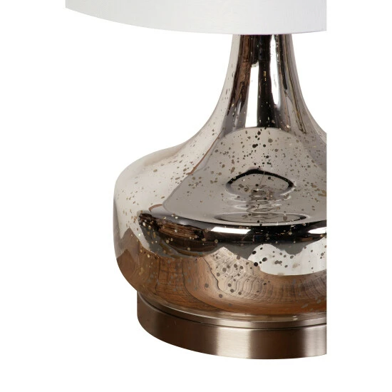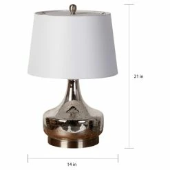 Ornament your home with the sheer loveliness and utter artfulness of this table lamp. The silver mercury glass base is topped with a white linen shade for soft, graceful light. The chic and unique look of this lamp is sure to catch the eye wherever it is placed.